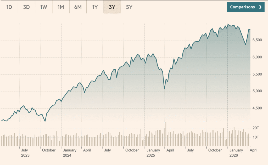 S&P 500 Performance: 3-Year Historical View (2023–2026) Source: Financial Times