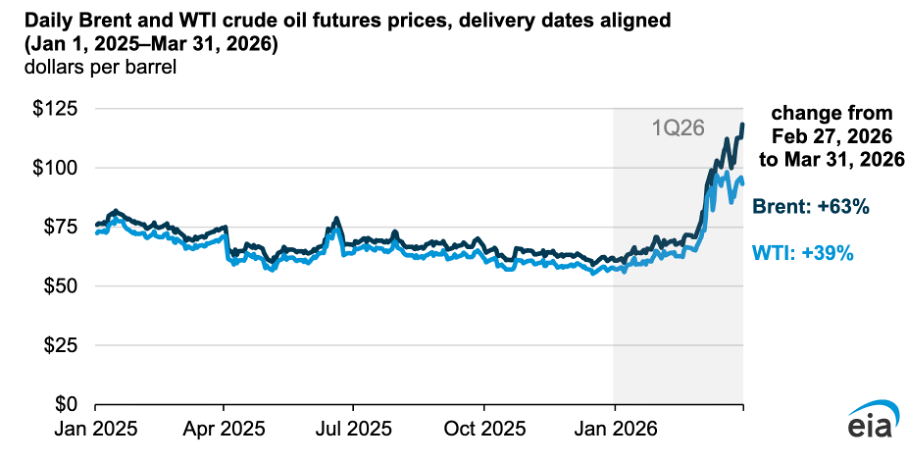 Daily Brent and WTI Crude Oil Futures Prices (Jan. 2025 to March 2026) Source : EIA